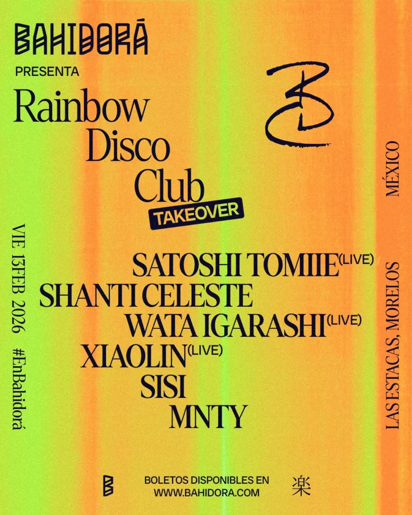 Bahidorá 2026 sigue confirmando que su magia está en los encuentros que provoca. Del 13 al 15 de febrero, Las Estacas, Morelos volverán a ser el punto de reunión para quienes entienden la música como experiencia y no solo como escenario. Entre ríos, selva y pistas de baile, esta edición suma un momento especial: la colaboración Bahidorá x Rainbow Disco Club, un puente sonoro entre México y Japón que se vivirá a través de artistas como Satoshi Tomiie, Shanti Celeste, Wata Igarashi, Xiaolin, Sisi y MNTY, nombres que hablan de electrónica con identidad y visión global.