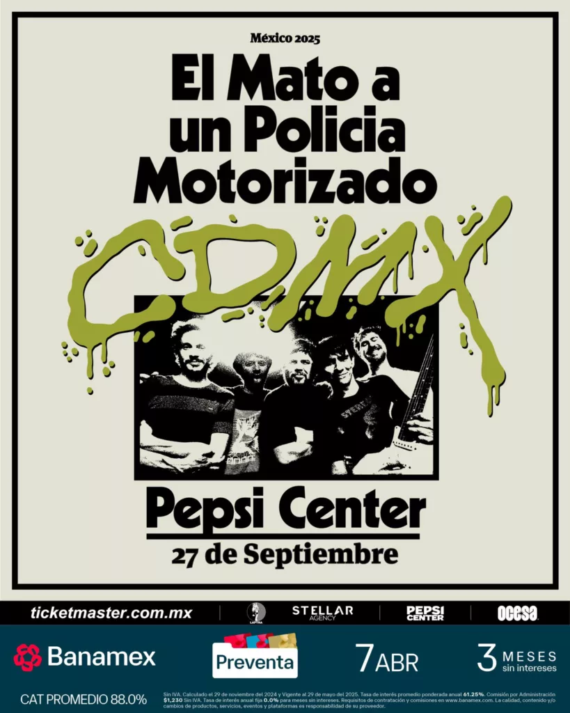 La escena del rock latinoamericano se prepara para una noche cargada de nostalgia, distorsión y poesía urbana: Él Mató a un Policía Motorizado, una de las bandas más influyentes del indie en español, vuelve a la Ciudad de México este 27 de septiembre para ofrecer un show imperdible en el Pepsi Center WTC.