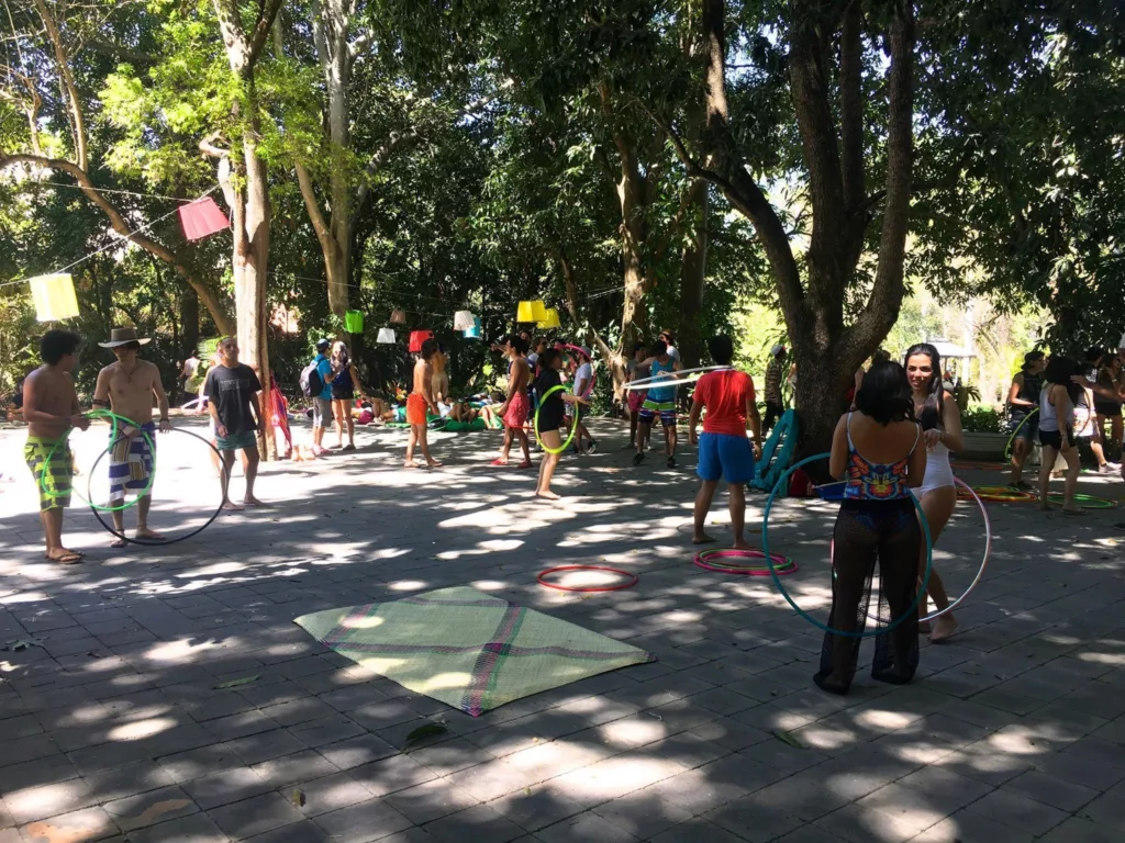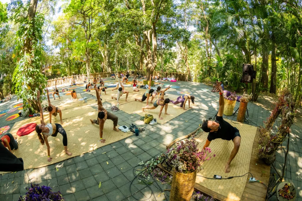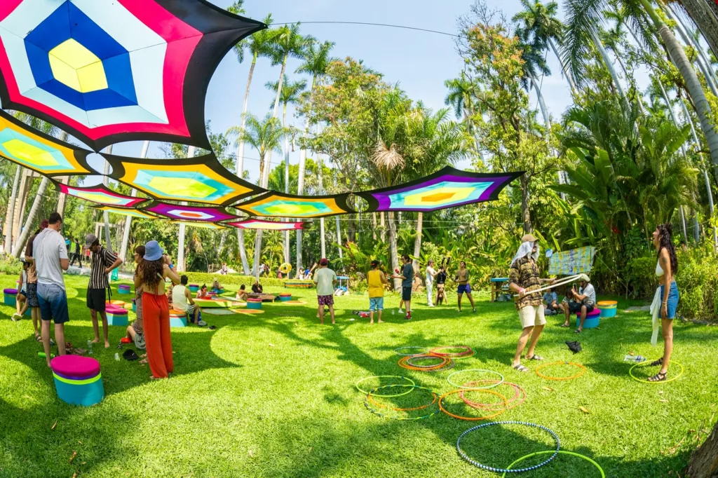 La experiencia continúa con actividades que invitan a la conexión física, emocional y creativa. Talleres como acroyoga, slackline, hulahooping, estampado textil o prácticas de exploración corporal desde una mirada consciente, conviven con momentos de asombro como el ilusionismo, las lecturas de tarot o intervenciones itinerantes de malabarismo que recorren el río y la selva. Todo sucede sin prisa, recordándonos que el festival también es un espacio para sentir, confiar y habitar el presente desde lo colectivo.