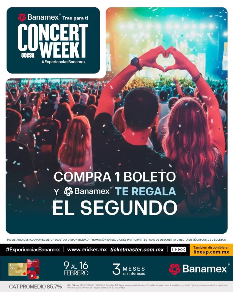 Si estabas esperando la señal para armar plan, aquí está. La promoción estará activa únicamente del 9 al 16 de febrero y aplica en eventos seleccionados, por lo que la recomendación es revisar la guía oficial y asegurar tus lugares antes de que vuelen. Porque si algo tenemos claro es que la música en vivo se disfruta más cuando se comparte.